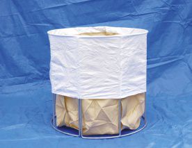 - フレコンバッグに物を投入するたびにフレコンスタンドは広がり安定します。※フレコンバッグの白色の部分を折り返すので袋以上は広がりません。